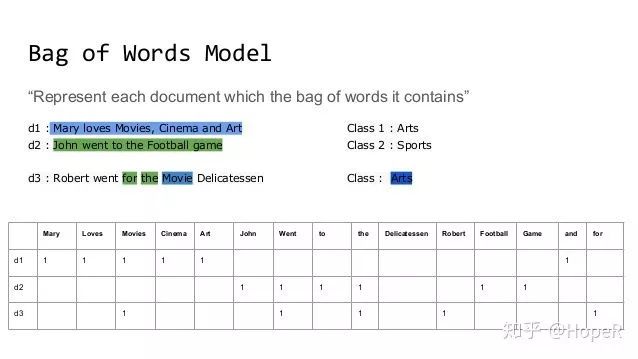 我们之前讲到的全部都是基于词袋模型(Bag of Words)的方法,比如一个文档某个词出现了多少次,然后就记录下来;进而,我们可以根据逆文本频率指数(IDF)来对其进行优化,但是它依然是基于词袋模型。我们想象一下,一个矩阵,行是文档,列是单词,其中的数值是单词在这个文档中出现的次数,或者是TF-IDF。