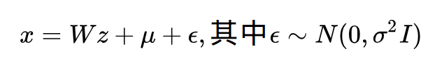 3. 从 PCA 和概率 PCA 两小节可以看出,PCA 和概率 PCA 中 x 都是 z 的线性函数,只不过概率 PCA 显式地把高斯噪声 ϵ 写在了表达式中;PCA 没有显式写出噪声,而是把高斯噪声隐含在了二范数重建误差中。
