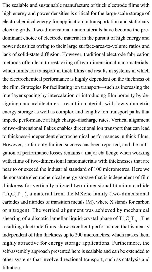 【Materials-材料】Thickness-independent capacitance of vertically aligned liquid-crystalline MXenes