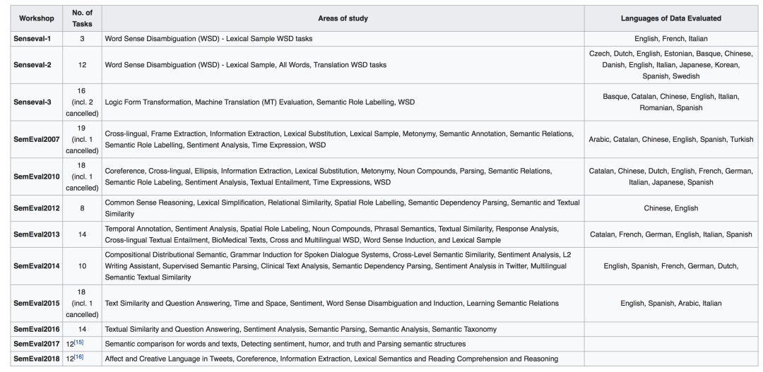 至于 SemEval 主要是词义消歧评测,目的是增加人们对词义、多义现象的理解。