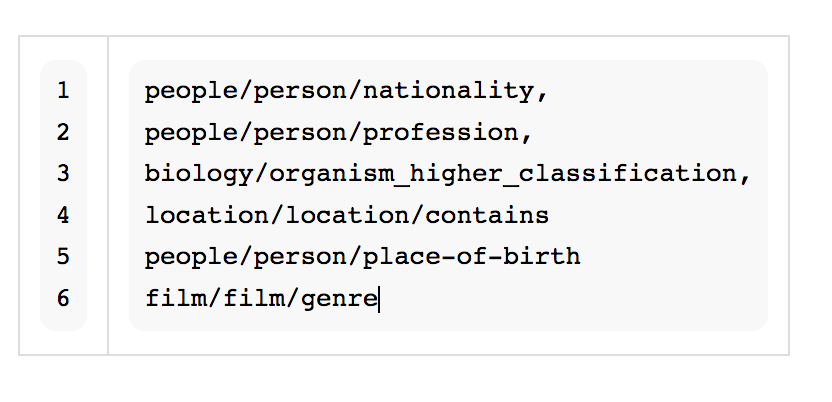 Word substrings (包括前后缀)的作用是很大的,以下面的例子为例,NE 中间有 ‘oxa’ 的十有八九是 drug,NE 中间有 ‘:’ 的则大多都是 movie,而以 field 结尾的 NE 往往是 place。