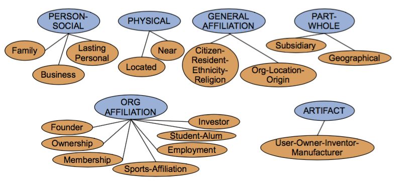 也就是命名实体识别,包括实体的检测(find)和分类(classify)关系抽取