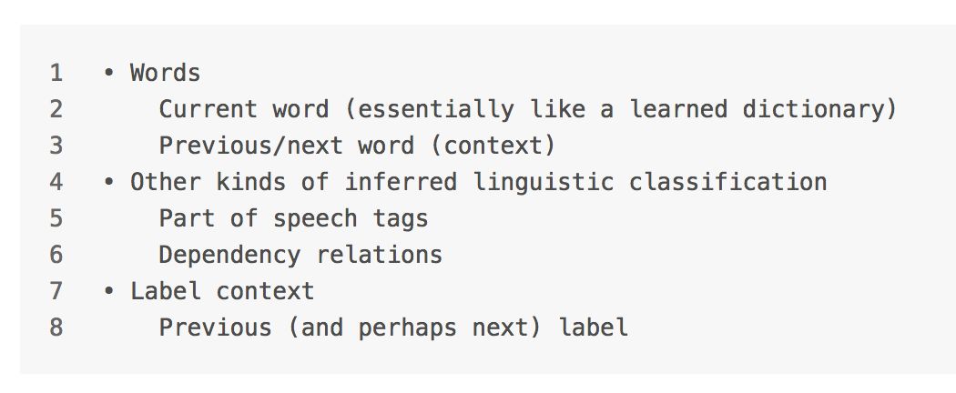 可以做一个 mapping,把 单词长度(length)、大写(capitalization)、数字(numerals)、希腊字母(Greek eltters)、单词内部标点(internal punctuation) 这些字本身的特征都考虑进去。