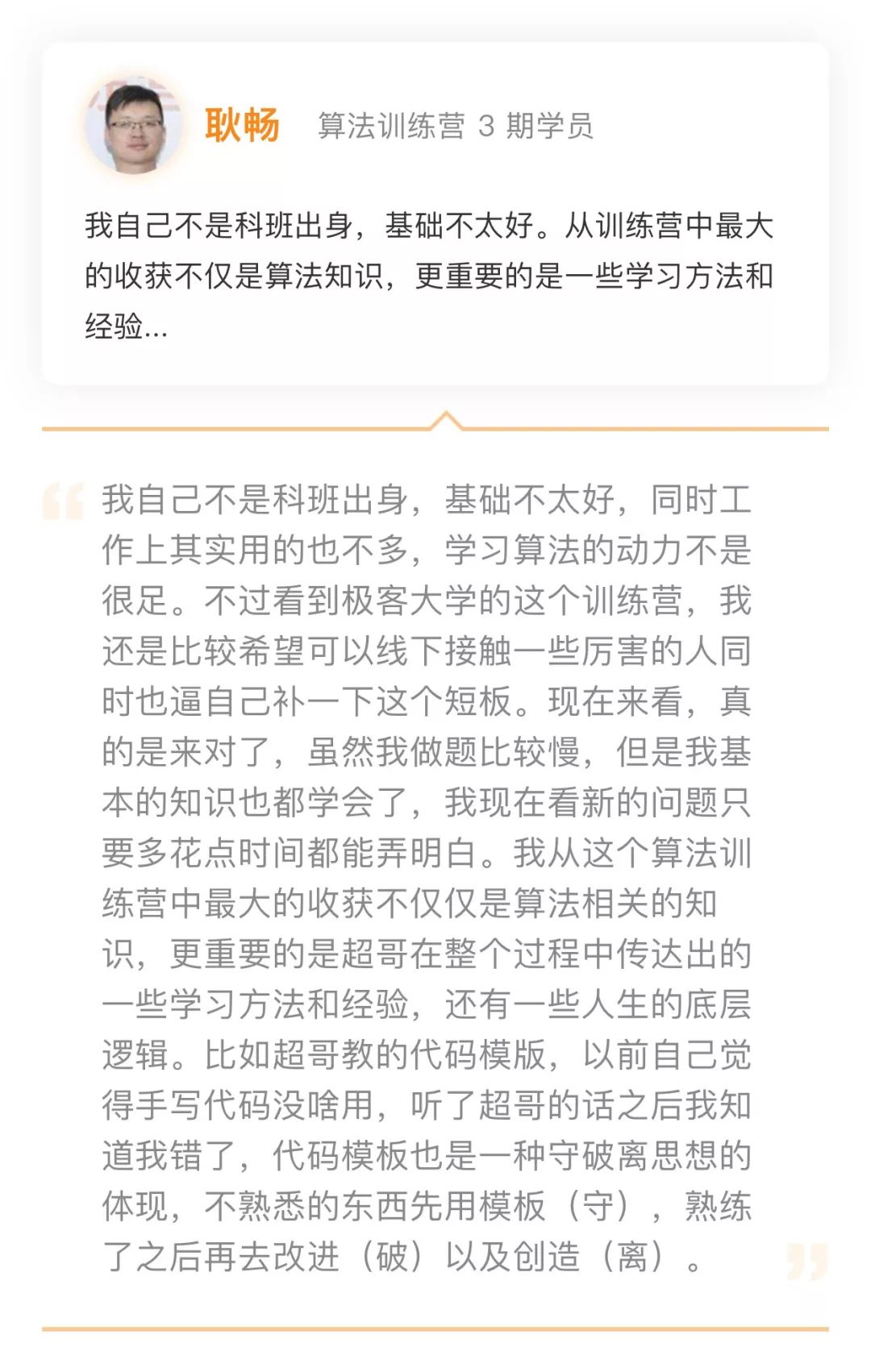 最后,来看看算法训练营的往期学员是如何在训练营成长的: