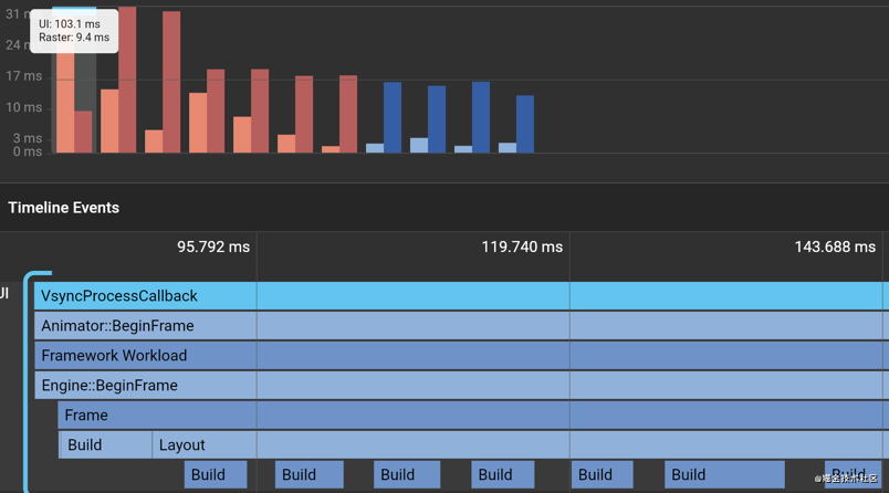 其中 CellWidget 高度为 60,内部嵌套了三个 TextField 的组件 (整体构建耗时在 9ms 左右)。