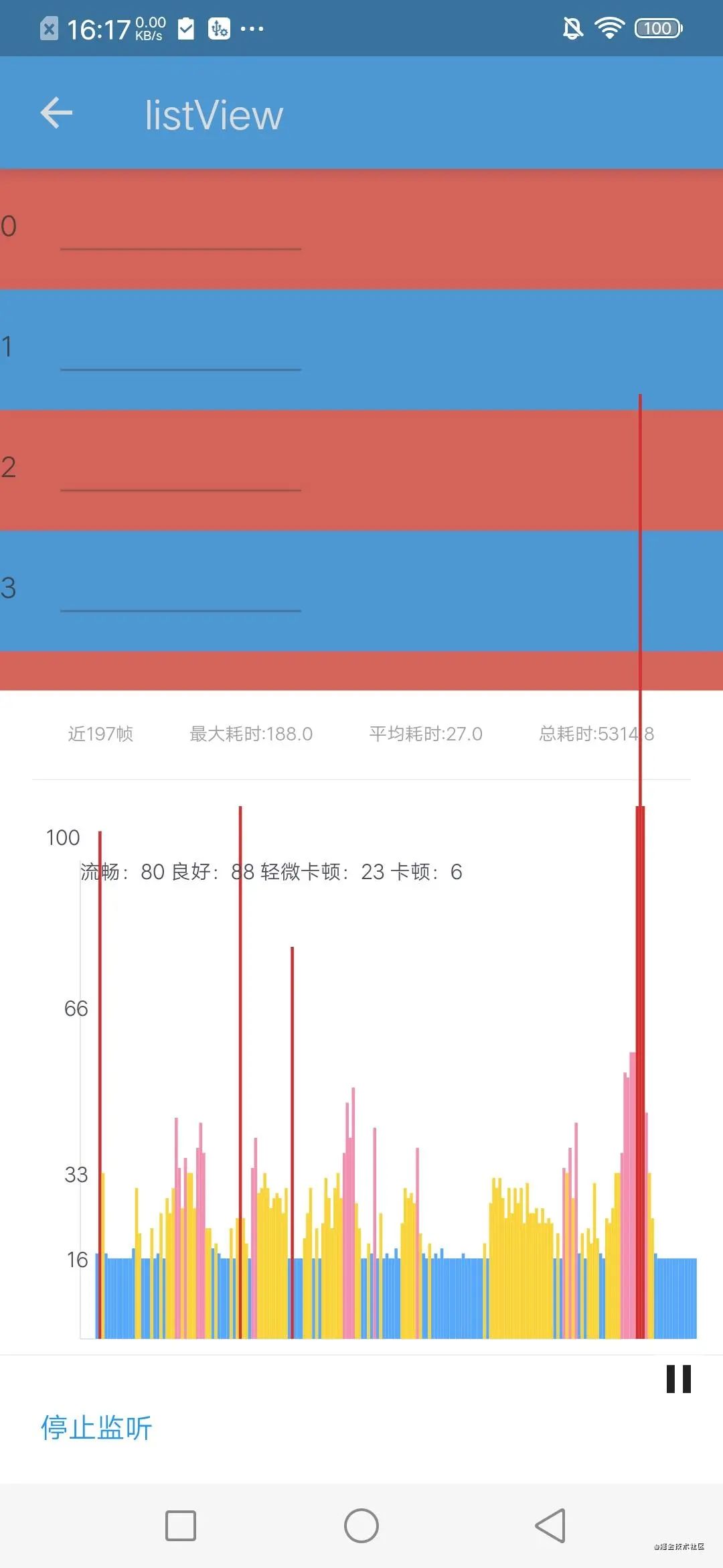 良好: 一帧耗时在 18ms-33ms 之间