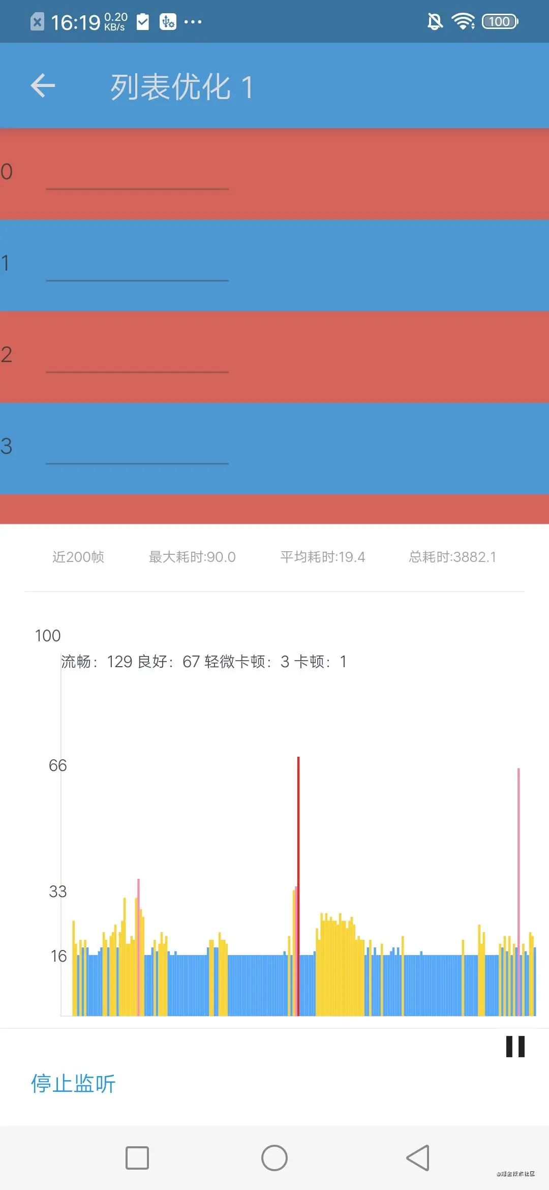 采用分帧优化后,卡顿次数从平均 33.3 帧出现了一帧,降低到 200 帧中仅出现了一帧,峰值也从 188ms 降低到 90ms。卡顿现象大幅减轻,流畅帧占比显著提升,整体表现更流畅。下方是详细数据。