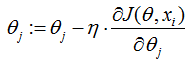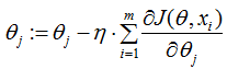 (2)由于是要最小化风险函数,所以按每个参数theta的梯度负方向,来更新每个theta: