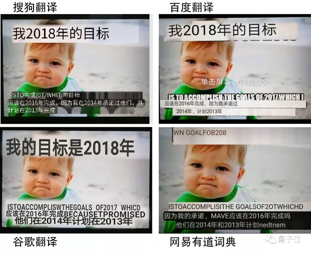 一方面,这道题确实比较绕口,另一方面,原图的渣像素也影响了选手们的发挥。在这一轮里,只有谷歌识别出了图片下方文字中的 2017 这个数字,但即便如此,它也并没有能准确翻译出这句话。