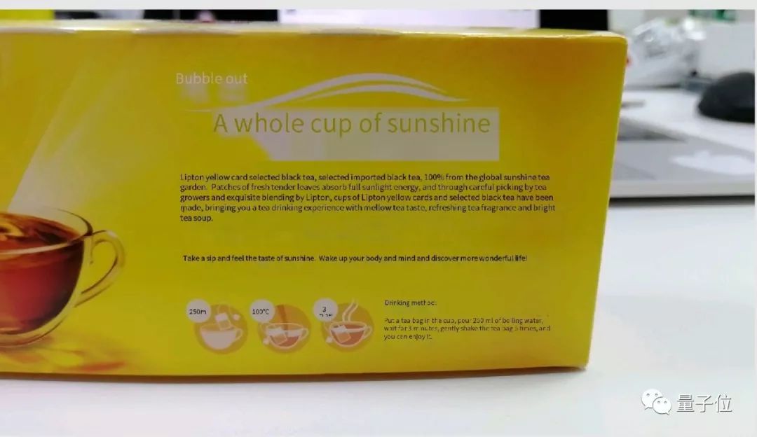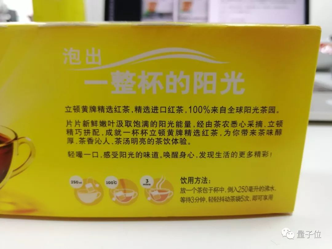 中文素材就比较常见了,量子位随手拿出了一盒立顿红茶。
