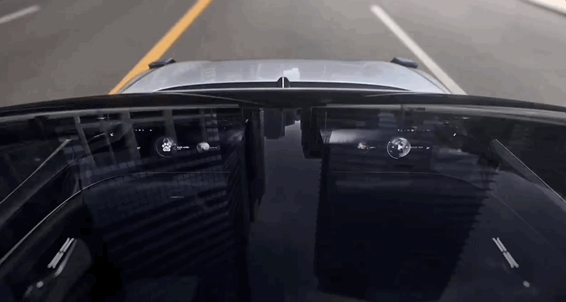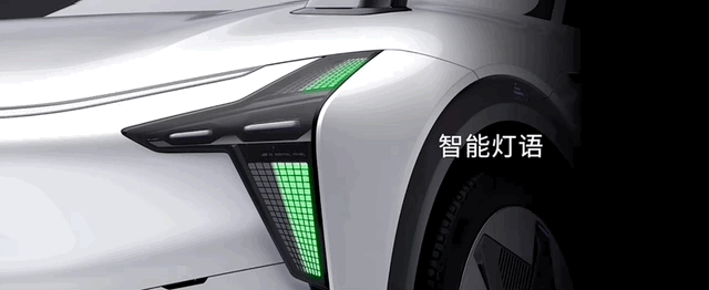 还能根据外界环境变化在灯组上显示出恰当的交互信息,比如超车警示、提醒行人、显示关键状态等等。