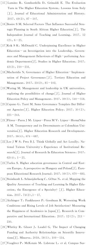 基金项目:教育部哲学社会科学研究重大课题攻关项目“现代大学治理结构中的纪律建设、德治礼序和权力配置协调机制研究”(项 目 号:15JZD044 );国 家 留 学 基 金 委 ( CSC )项 目(201706040102 )。