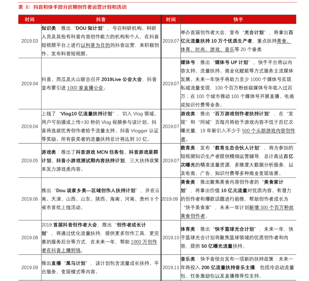 两者如今都在更深度的运营,包括头部内容&垂类内容运营、明星运营、KOL运营等。