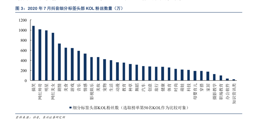 目前抖音与快手均是娱乐属性很重的社区。以抖音为例,搞笑、网红帅哥、明星、网红美女等垂类备 受其平台用户喜爱,摄影教学、职场教育、办公软件、知识资讯类则发展缓慢。