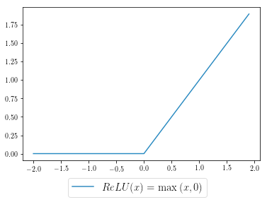 NumPy为我们提供了有用且直观的语法——我们的激活函数(蓝色曲线)可以通过代码表述出来,其中x是我们的输入,relu是我们的输出: