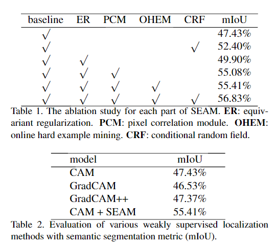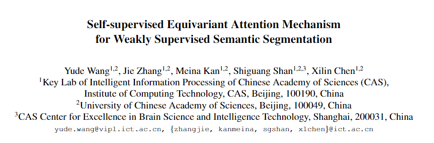 提出了一种自我监督的等变注意机制(SEAM),将等变正则化与像素相关模块(PCM)结合在一起,以缩小完全监督和弱监督语义分割之间的监督差距。