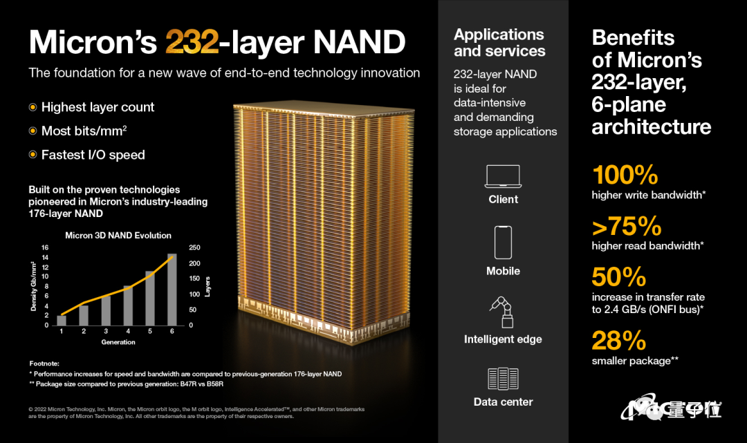 美光继上次抢先推出176层3D NAND后,近日又率先推出全球首款232层NAND。