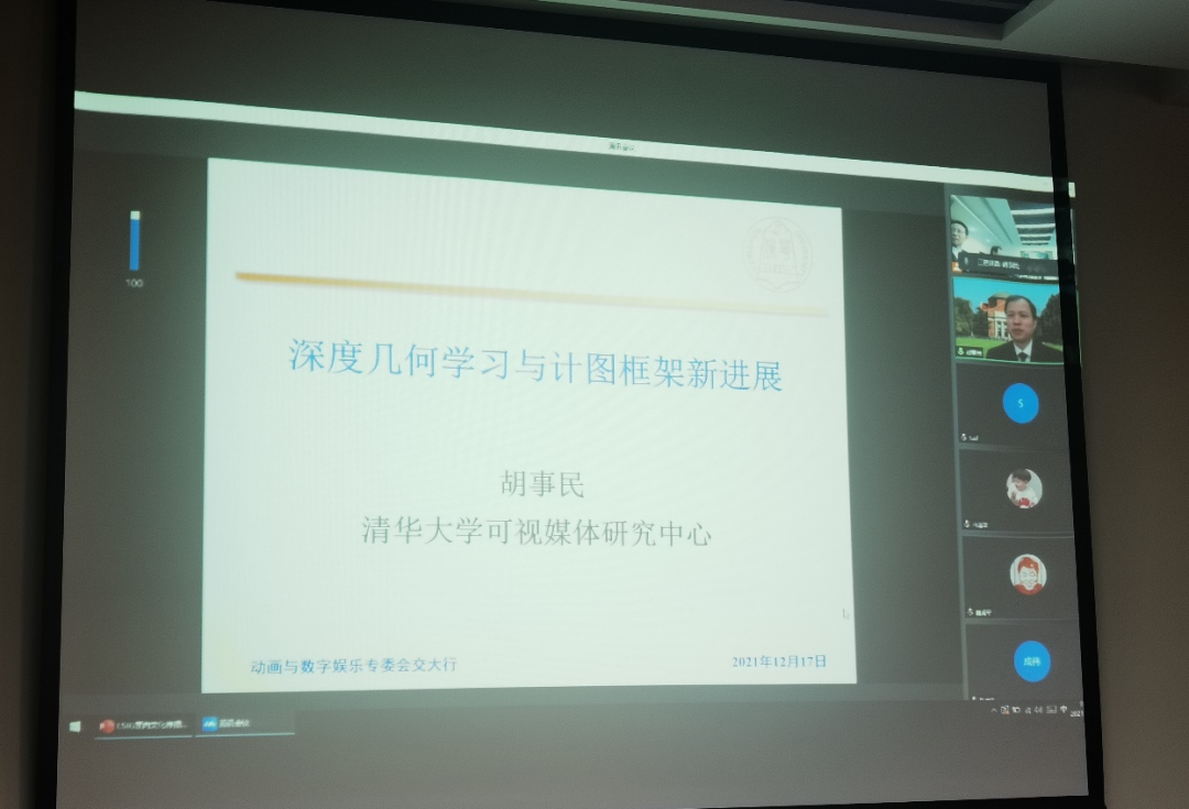 受新冠疫情的影响,会议在上海交通大学以线下和线上双重模式举行。本次大会由上海交通大学特聘教授、中国图象图形学学会动画与数字娱乐专委会主任马利庄主持,清华大学计算机科学与技术系教授胡事民、北京大学博雅特聘教授陈宝权、上海交通大学媒体与传播学院教授席涛、浙江大学长江学者特聘教授鲍虎军受邀在会上作精彩的学术报告,线上线下共有60余人参与了此次会议。