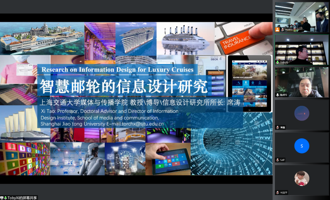 随后上海交通大学媒体与传播学院教授席涛为我们带来了“智慧邮轮的信息设计研究”,报告主旨讲述了邮轮工业是国家正在发展的巨系统工程,邮轮旅游是人们未来新的生活方式,是移动海上城镇。邮轮的视觉设计是未来邮轮,智能产业的系统性设计,主要体现在智能信息识别系统与视觉传播方法、用户行为、体验的研究,从智慧传播、视觉识别、智能信息管理系统、智能界面、游戏开发等方面研究智慧邮轮的设计需求。