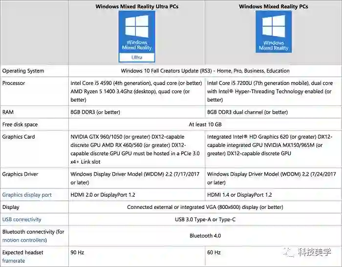 微软于今日正式为 Windows 10 PC 平台带来了对华硕、三星、联想、惠普、戴尔、宏碁等厂商的多款混合现实头戴式设备的支持,并且放出了一款用来检查硬件和系统兼容性的专属 app 。首先谈谈硬件要求:想要在 Windows 10 PC 上运行增强现实装置,至少需要一颗英特尔四代酷睿 i5 / AMD Ryzen 4 1400 桌面级四核处理器、或者支持超线程(HT)技术的英特尔七代酷睿 i5 双核处理器。其它方面,你最好为主机配备 8GB 内存、以及一块高端独显。