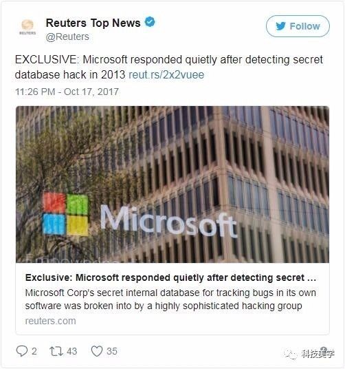 据路透社独家报道称,微软内部拥有一个数据库,里面包含了各种Windows漏洞,有些外界已经知晓,而有些是大家不知道的,保密级别在他们内部最高的,但是就是这么一个数据库,竟然在4年多以前遭到手段高明的黑客团伙入侵。