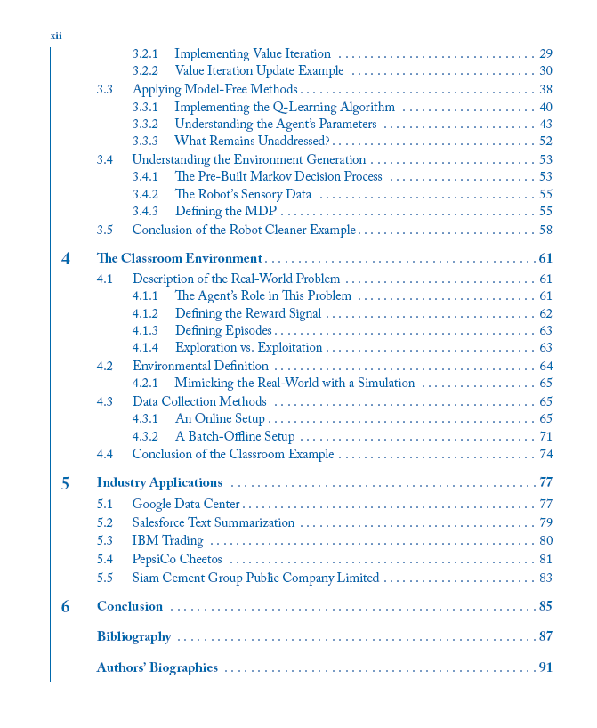 对于对强化学习作为解决方案感兴趣但不精通的决策者,本书在介绍和案例研究部分包括简单的、非技术的例子。这些提供了强化学习的背景,以及在实践中应用它的挑战和风险。具体来说,这些部分阐述了强化学习和其他机器学习方法的区别,以及知名公司如何成功地使用这种方法解决他们的问题。