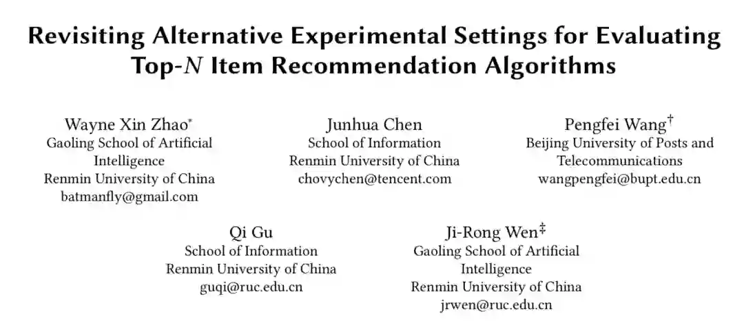 论文标题:Revisiting Alternative Experimental Settings for Evaluating Top-N Item Recommendation Algorithms