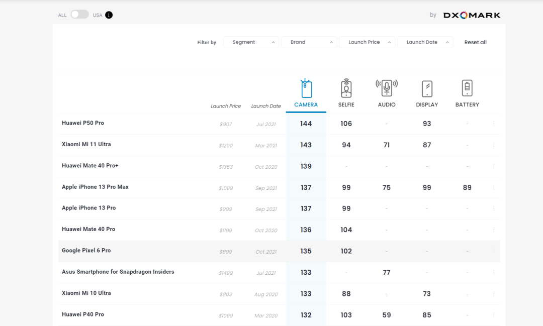 今日,DxOMark 官网更新了相机评分排行榜,谷歌 Pixel 6 Pro 135 分排名总榜第七,排在华为 Mate 40 Pro(136)之后,拍照(143)与变焦(71)得分子项目均不敌 iPhone 13 Pro Max(拍照 143、变焦 77)。总的来说,谷歌 Pixel 6 Pro 照片性能和视频质量还是比较出色,从成像的角度来看,选择 Android 的最佳选择,谷歌 Pixel 6 Pro 要高于三星和华硕。