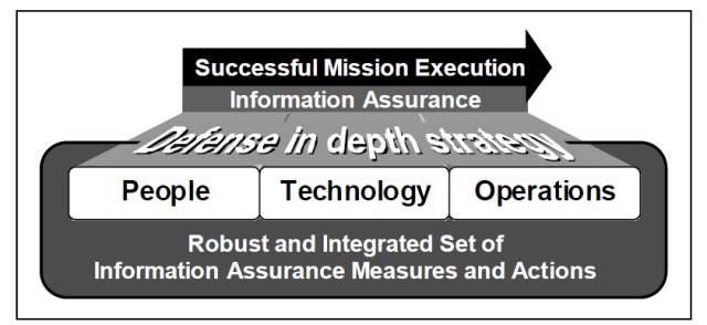IATF信息保障的核心思想是纵深防御战略,该战略为信息保障体系提供了全方位、多层次的指导思想,通过采用多层次、在各个技术框架区域中实施保障机制,以最大限度降低风险、防止攻击,保障用户信息及其信息系统的安全。IATF的纵深防御战略如图4所示,其中人(People)、技术(Technology)和操作(Operation)是主要核心因素,是保障信息及系统安全必不可少的要素。