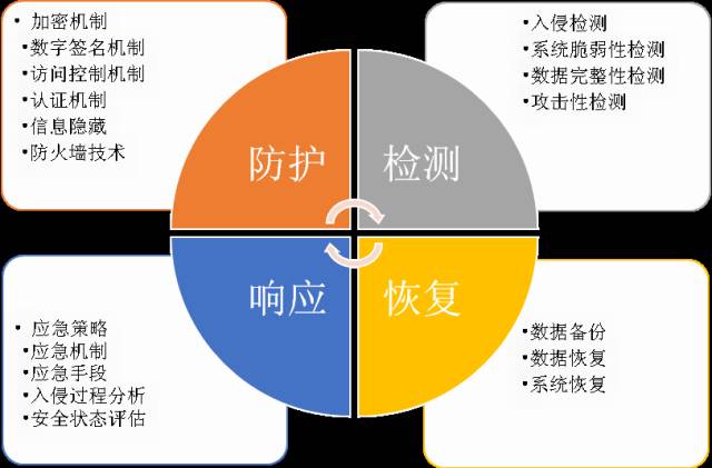 网络安全体系是一项复杂的系统工程,需要把安全组织体系、安全技术体系和安全管理体系等手段进行有机融合,构建一体化的整体安全屏障。针对网络安全防护,美国曾提出多个网络安全体系模型和架构,其中比较经典的包括PDRR模型、P2DR模型、IATF框架和黄金标准框架。