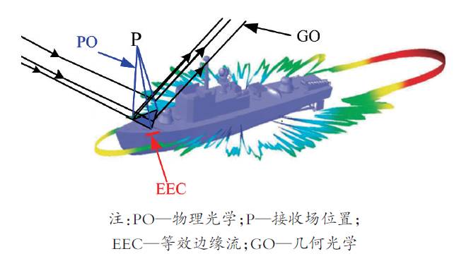 电磁散射建模计算方法可以大幅降低海面目标特性数据获得成本,便于获取其他国家军用目标特性数据。舰船电磁散射建模需要精细考虑船体结构镜面散射(甲板、天线罩、炮管外壁等)、多次散射(开口结构、组合结构、凹面结构等)和绕射(边缘、尖顶、弯折不连续等)等复杂散射成分。目标电磁散射计算主要包括全波数值方法和高频近似方法2种方法,全波数值方法计算精度高,但对于舰船目标这类电大尺寸目标而言计算过于复杂、耗时严重且实现难度大。因此,通常采用高频近似方法来获得散射场,简化舰船目标散射特性求解的复杂度。以物理光学法(PO)、物理绕射理论(PTD)和射线弹跳法(SBR)等为代表的高频渐近方法在复杂舰船目标电磁特性的高效计算中具有显著优势。这些方法各有优缺点,例如物理光学法无法反映舰船中腔体、二面角散射,射线弹跳法对舰船表面散射区耗时巨大,因此,以孙占久为代表的学者提出将复杂目标整体由表面散射、边缘散射和腔体散射分别处理再叠加计算的方法,实现了大型军事目标的电磁散射特性计算。