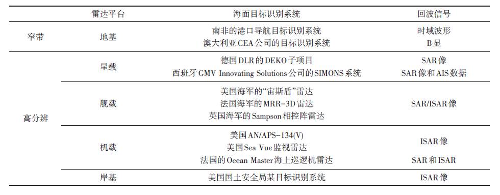 雷达海面目标识别的工程应用是国内外学者一直致力解决的问题。国外在此方面的研究起步早,已有多型雷达具备目标识别能力(表3)。