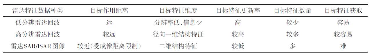 为实现可靠的远距离多层次海面目标分类识别,需要综合低分辨雷达回波、高分辨雷达回波、雷达合成孔径雷达/逆合成孔径雷达(SAR/ISAR)图像等各类特征数据,各类特征数据优缺点如表1所示。