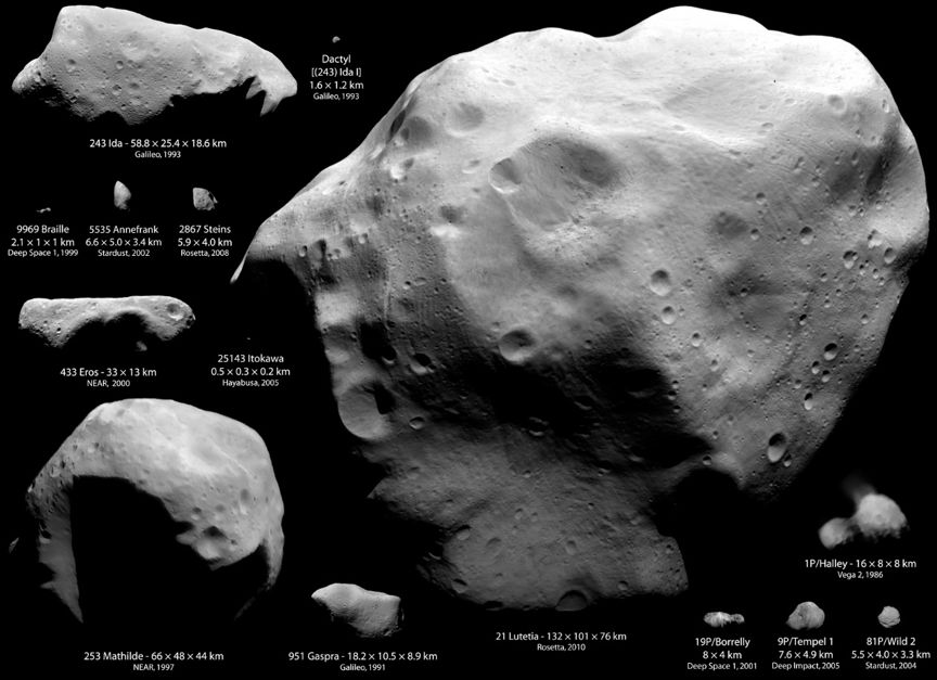 彗星和小行星大小和形状举例。图片来源:ESA