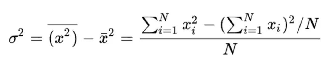 常见的求方差的方法有 two pass 方法、naive 方法、和 Welford 算法,本文摘录一些关键的公式和结论,详细的介绍和推导可参考:Wiki: Algorithms for calculating variance(https://en.wikipedia.org/wiki/Algorithms_for_calculating_variance) ,和 【GiantPandaCV: 用Welford算法实现LN的方差更新】— https://mp.weixin.qq.com/s?__biz=MzA4MjY4NTk0NQ==&mid=2247497854&idx=1&sn=d5811f7cfb2b8a58931dbf3222cfdf3d&scene=21#wechat_redirect