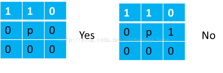 比如判断点p的8邻域是否只含有2连通的区域,可以这样实现: