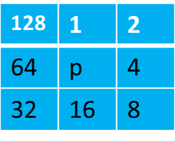 由于操作的是二值图像,在判断p的8邻域的最大连通域是否只含有2连通域时,只需要对p的8邻域进行加权相加得到一个值,记作p2,然后去c2里查询,如果c2里有p2,则点p周围的8邻域只含有2连通的区域。比如: