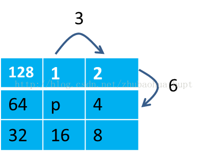 把相邻2连通像素两两相加,会得到一个这样的集合c2{3,6,12,24,48,96,192,129},