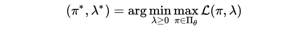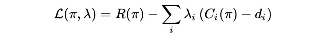 为了求解 CMDP,可以采用拉格朗日松弛技术,具体来说,上述 CMDP 问题的拉格朗日函数为
