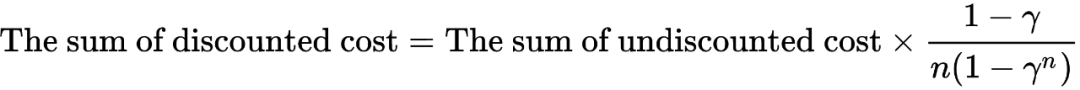 将实际无折扣代价之和得到的门限值转换成了有折扣代价之和得到的门限值: