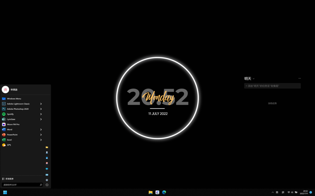 我在 Start11 中,将开始菜单设置为了「现代风格」。「现代风格」拥有接近 Windows 7 开始菜单的布局,但更符合 Windows 11 的设计风格。不仅首页是更为直观的应用程序列表,也没有大块却不精致的磁铁占据视野。