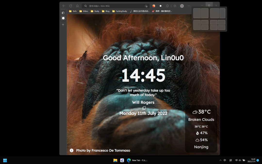 只需要在拖动软件窗口时,按住 Shift,便可以触发 FancyZones 布局,虽然没有 macOS 上的 Magnet 利用「触发角」顺手,但也带来了不错的使用体验。Win + Alt + Ctrl + 数字 可以快速在自定义布局中切换,满足了我不同场景设置不同窗口布局的需要