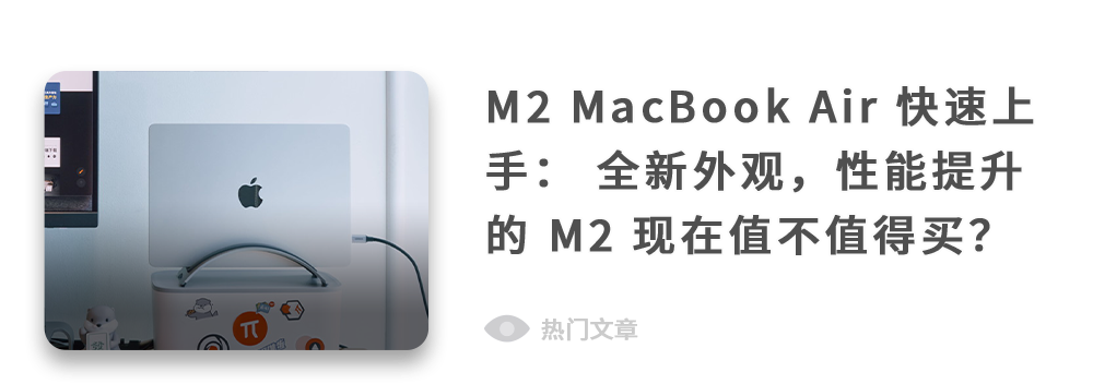 编注:搭载 M2 芯片的 MacBook Air 今日出货,少数派昨晚已在第一时间发布新机上手体验,如果你昨晚错过了这篇文章,可以 点此阅读。