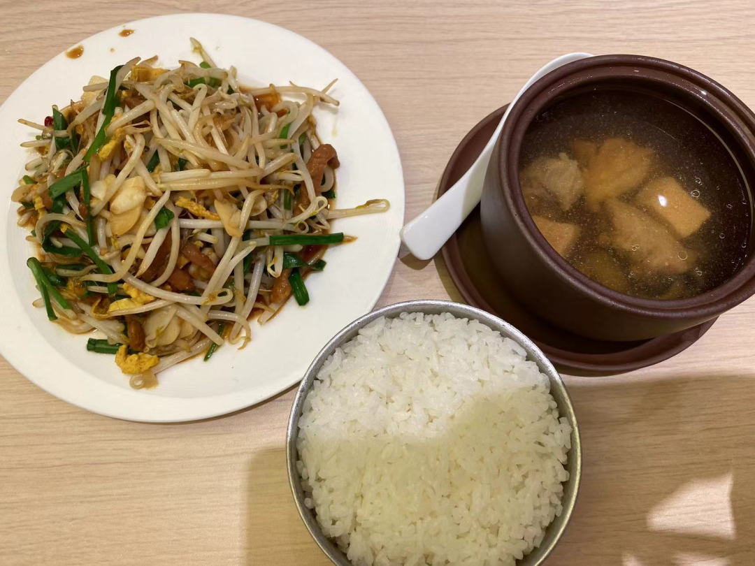 Tech星球点了一份炒合菜和鸡汤,共花费了47元,几乎只用了一分钟就上完菜。