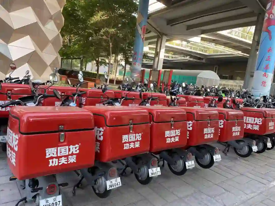 这家店还提供外卖服务,在美团上它的月销量是1956单。这样的单量在美团并不算优质店铺,作为对比,西贝莜面村的月销量大多都在6000单以上。为了保证效率,贾国龙特意组建了专门的配送团队。