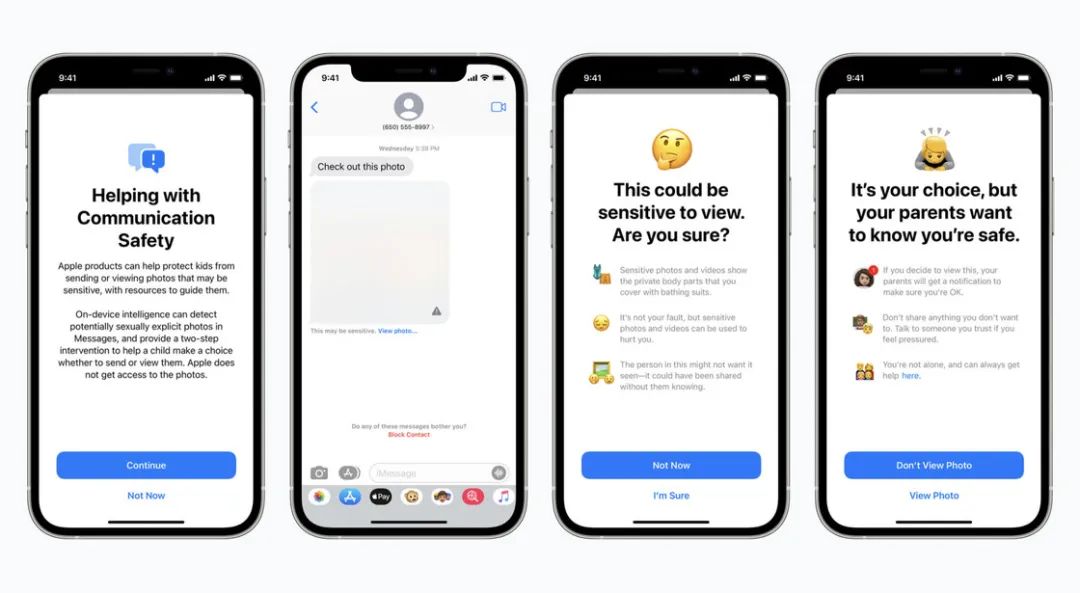 备受争议 的 iMessage 信息儿童信息安全检测将正式上线。它能自动判断儿童用户发送(或接收)的是否为色情图片。若儿童在收到色情图片时,会被自动模糊。如果要强行浏览或发送色情图片,就会弹出警示卡片,并通知父母。Apple 表示这一功能是利用本地机器学习来实现的,Apple 服务器无法得知任何数据;