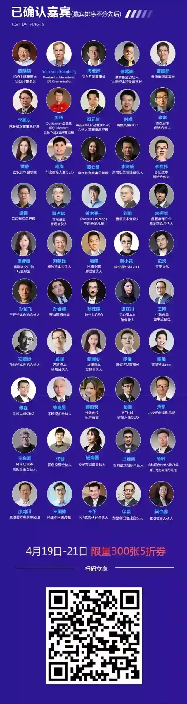 同时2018年40位40岁以下投资人颁奖典礼也将盛大揭晓。他们是投资界的新贵,也是胆识与魄力的最佳诠释者。他们以新思维、新理念引领创投行业的发展。颁奖典礼将以嘉奖的方式鼓励更多年轻力量投身到创投大潮。