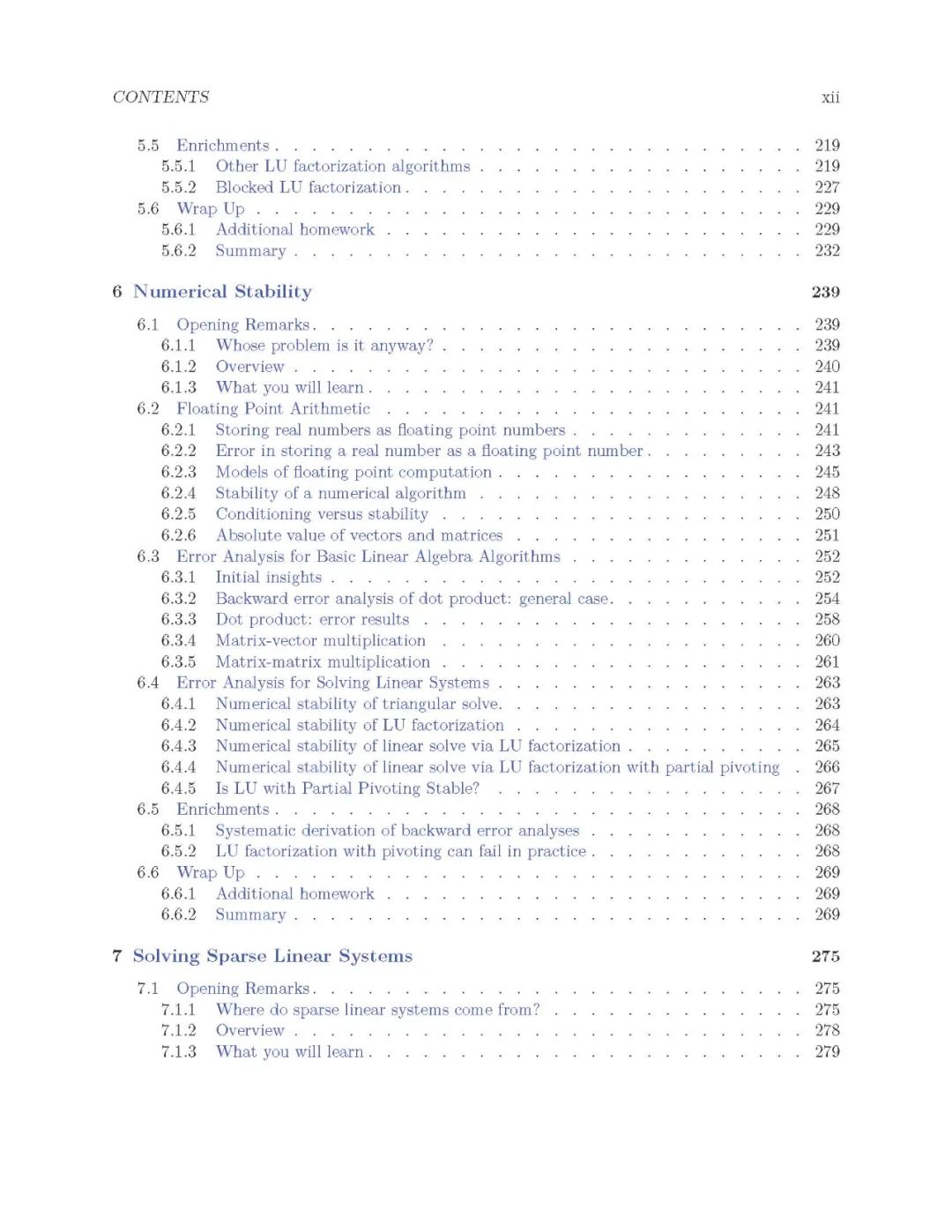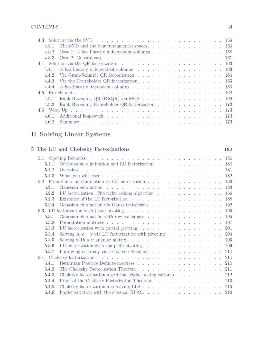 第二部分:求解线性系统集中在所谓的直接和迭代方法,同时也引入了数值稳定性的概念,它量化和限定了在问题的原始陈述中引入的误差和/或在计算机算法中发生的舍入如何影响计算的正确性。