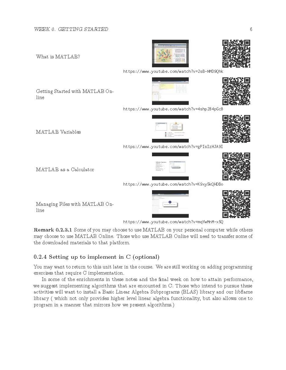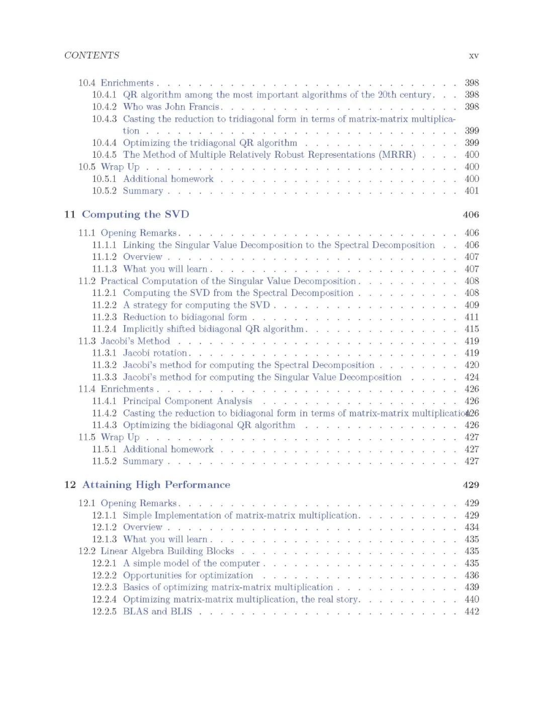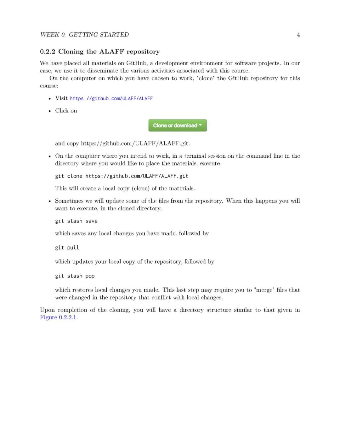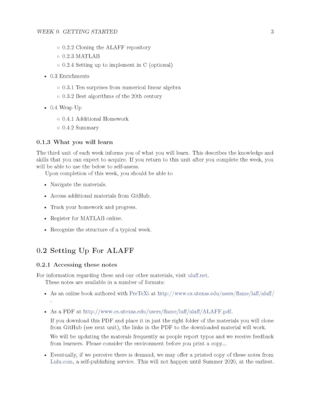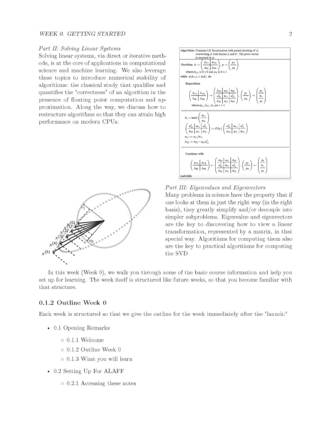 我们在不同的设置中使用了这些材料。这是我们在德克萨斯大学奥斯汀分校名为“数值分析:线性代数”的课程的主要资源,该课程由计算机科学、数学、统计和数据科学、机械工程以及计算科学、工程和数学研究生课程提供。这门课程也通过UT-Austin计算机科学硕士在线课程提供“高级线性代数计算”。最后,它是edX平台上名为“高级线性代数:基础到前沿”的大规模在线开放课程(MOOC)的基础。我们希望其他人可以将ALAFF材料重新用于其他学习设置,无论是整体还是部分。