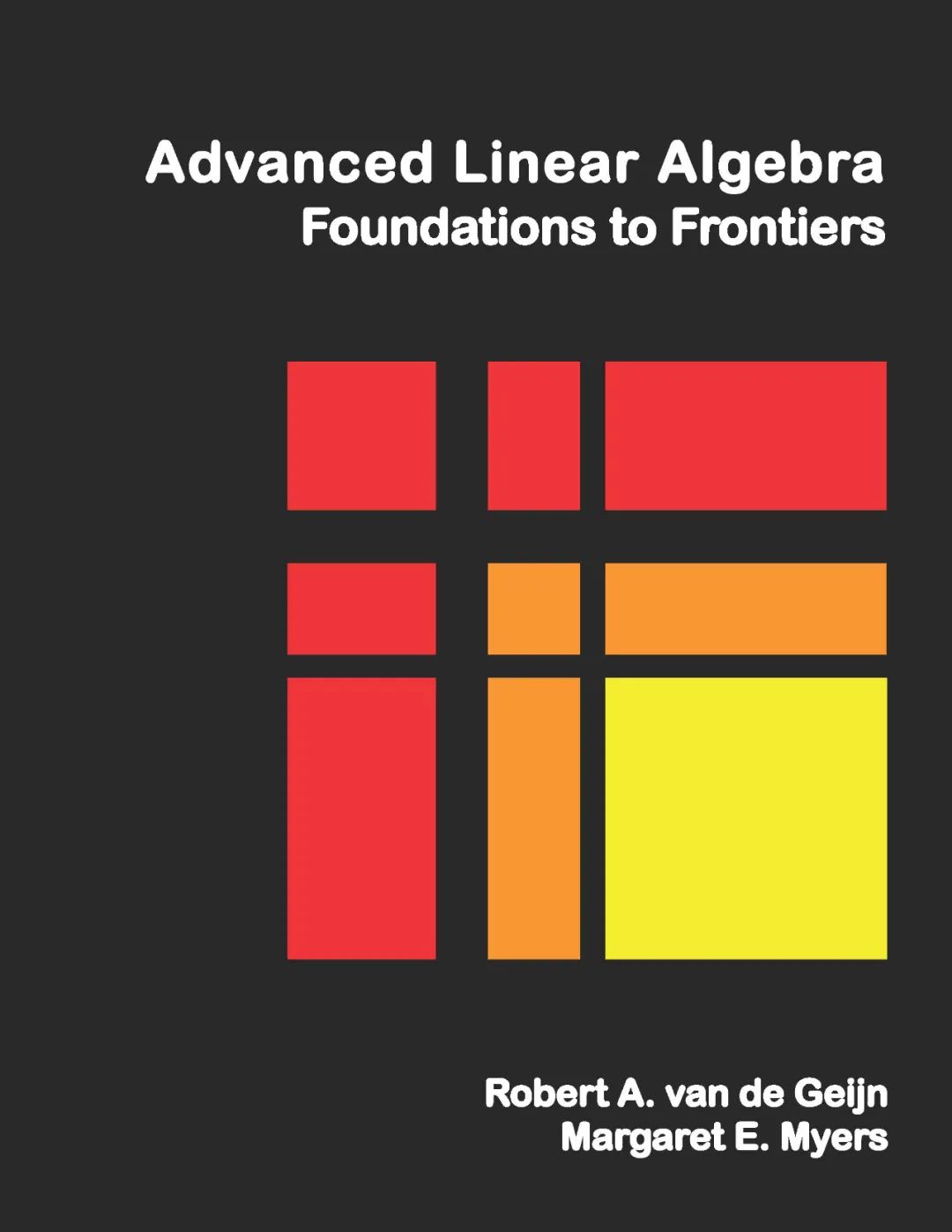 线性代数是计算和数据科学家的基本工具之一。这本书“高级线性代数:基础到前沿”(ALAFF)是一个替代传统高级线性代数的计算研究生课程。重点是数值线性代数,研究理论、算法和计算机算法如何相互作用。这些材料通过将文本、视频、练习和编程交织在一起来保持学习者的参与性。